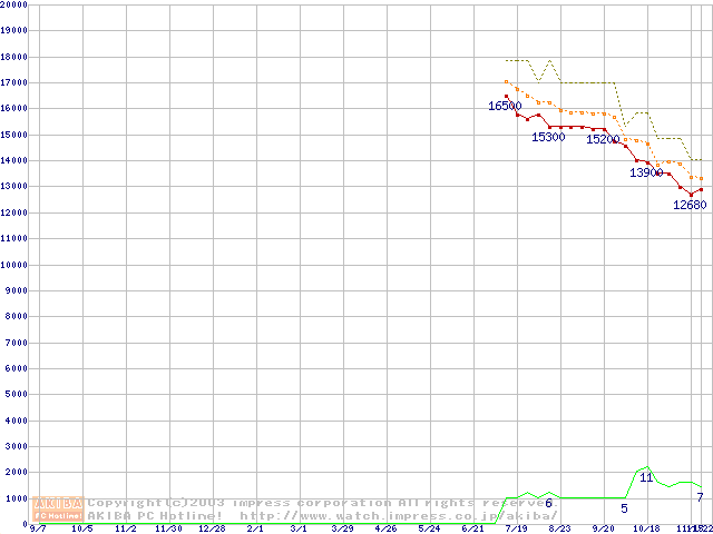 WD Caviar (7200rpm,SerialATA,8MB)の最安値推移