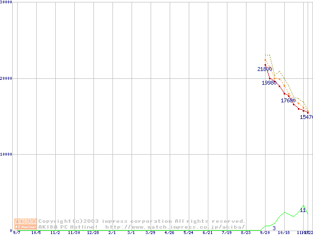 HDD主要製品(最安値1万5千円~2万円未満)の最安値推移