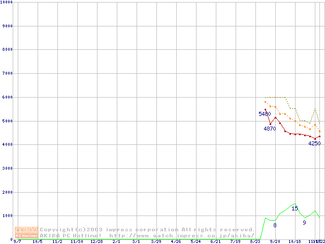 Socket A (OPGA,FSB 266MHz,L2 64KB,Applebred)の最安値推移