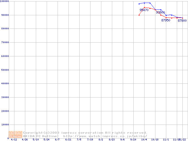 | [↑前グラフ]: | Socket 754 (PGA,FSB 800MHz,L2 1MB,ClawHammer)の最安値推移 |