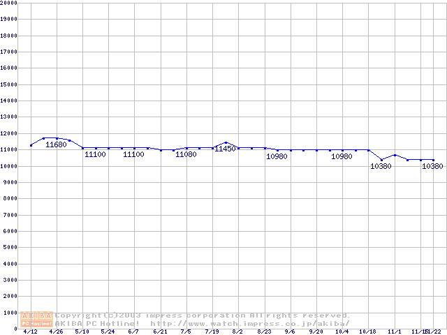 | [↓次グラフ]: | Socket 370 (FC-PGA2,FSB 100MHz,L2 256KB,Tualatin)の最安値推移 |