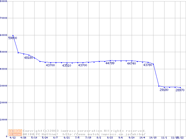 | [↑前グラフ]: | Socket 478 (micro-PGA,FSB 800MHz,L2 512KB,Hyper-Threading,Northwood)の最安値推移 |