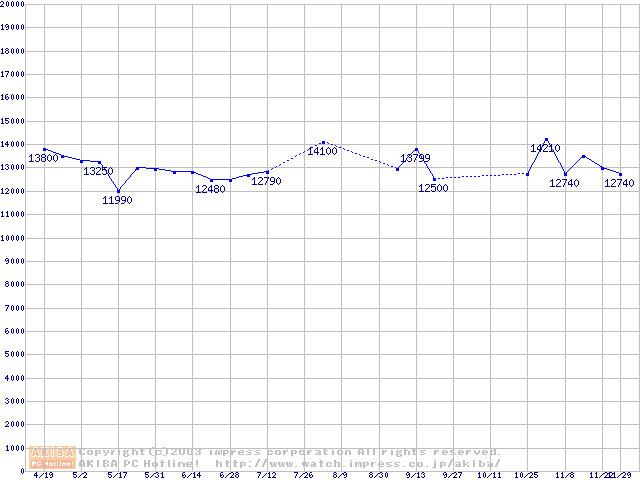 | [↑前グラフ]: | 2.5インチHDD 20GB~40GB未満(9.5mm厚)の最安値推移 |