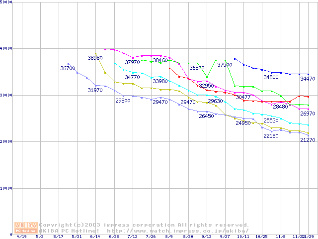メモリ主要製品の最安値推移