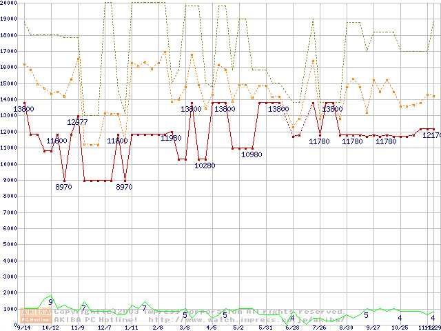 PC133 SDRAM DIMM CasLatency=3 ECC対応 Registeredタイプの最安値推移