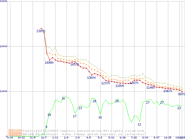 DiamondMax Plus 9 (7200rpm,8MB,UltraATA/133,FDB)の最安値推移
