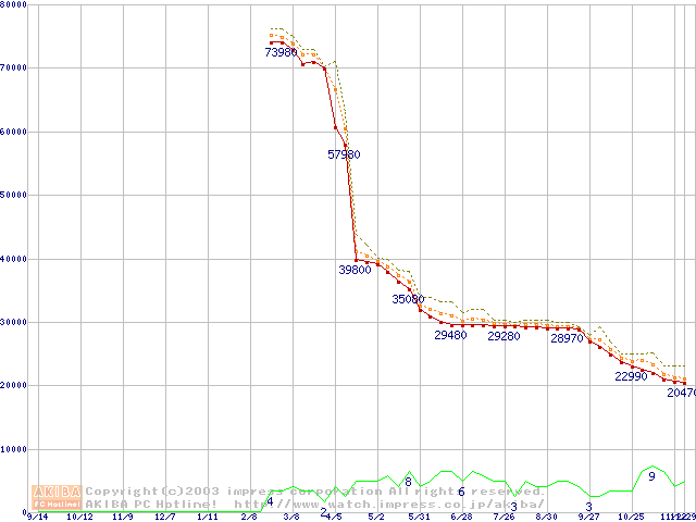 Socket A (OPGA,FSB 333MHz,L2 512KB,Barton)の最安値推移