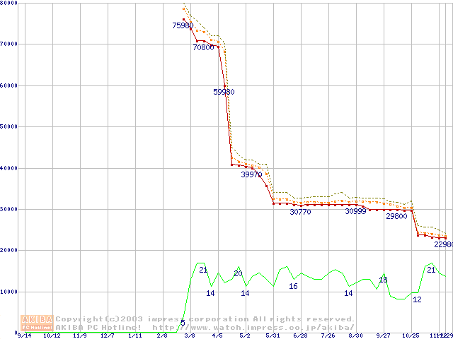 Athlon XP 3000+ (2.17GHz) リテールパッケージの価格推移