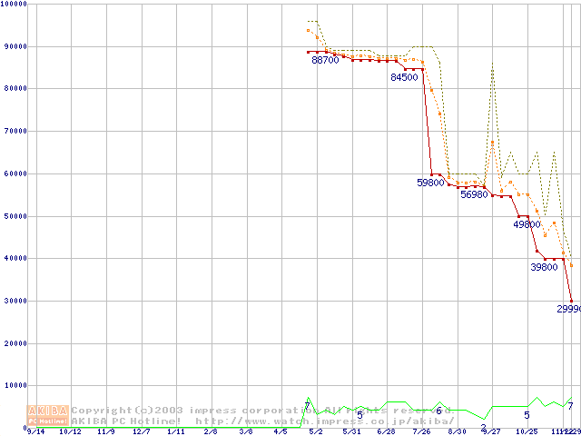 Socket 940 (PGA,FSB 800MHz,L2 1MB,SledgeHammer)の最安値推移