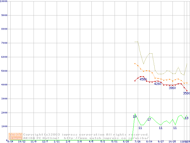PC3200(DDR400) DDR SDRAM DIMMの最安値推移