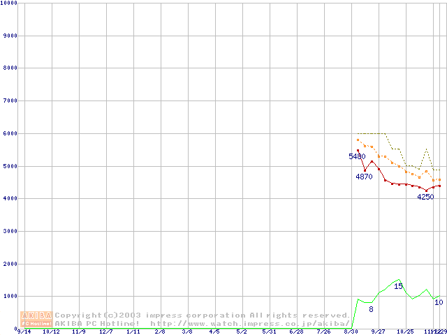 Socket A (OPGA,FSB 266MHz,L2 64KB,Applebred)の最安値推移