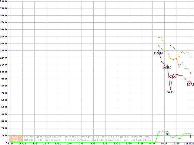 PC4300(DDR533) DDR SDRAM DIMMの最安値推移