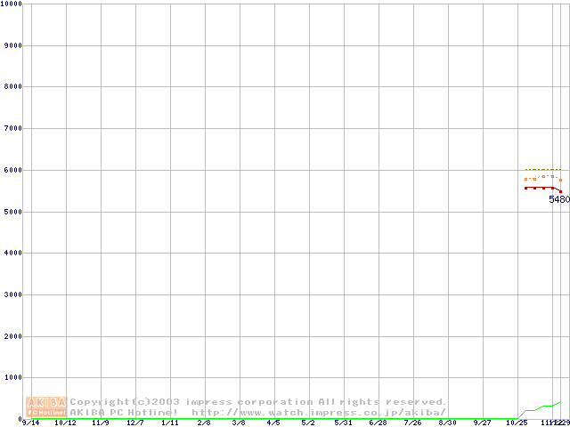 Socket A (OPGA,FSB 266MHz,L2 64KB,Applebred)の最安値推移