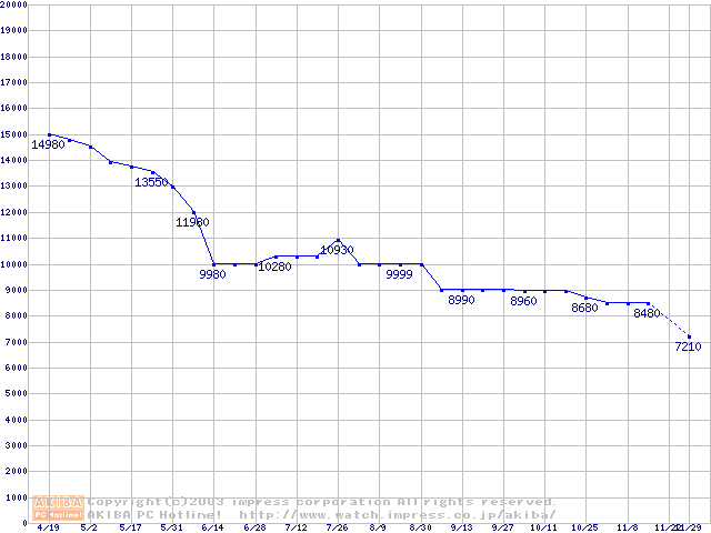 | [↓次グラフ]: | Barracuda 7200.7 (7200rpm,UltraATA/100,8MB,80GB/Platter,FDB)の最安値推移 |