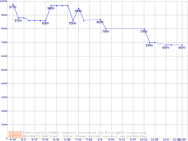 | [↑前グラフ]: | SpinPoint P40 (7200rpm,UltraATA/100,2MB)の最安値推移 |