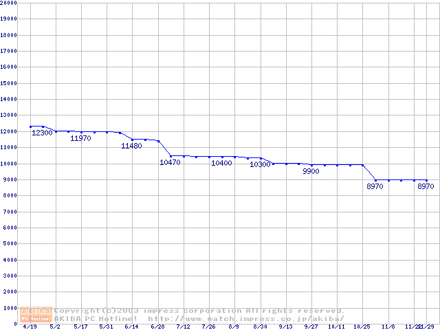 | [↑前グラフ]: | WD Caviar(Special Edition) (7200rpm,UltraATA/133,8MB)の最安値推移 |