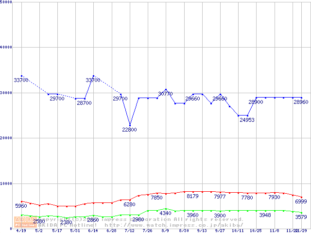 | [↑前グラフ]: | PC4300(DDR533) DDR SDRAM DIMMの最安値推移 |