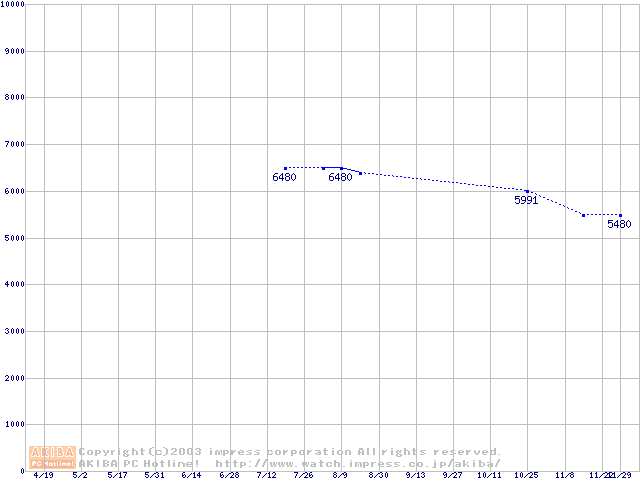 | [↓次グラフ]: | PC3700(DDR466) DDR SDRAM DIMMの最安値推移 |