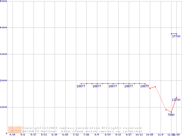 | [↓次グラフ]: | PC1066 DRDRAM RIMM4200(32bit)の最安値推移 |