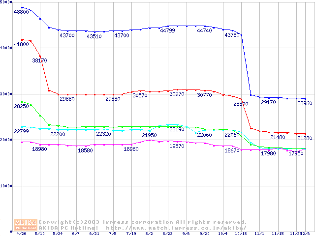 | [↓次グラフ]: | Socket 478・FSB 400MHzの最安値推移 |