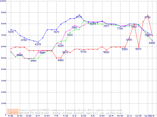 メモリ主要製品の最安値推移