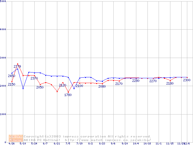 256MBモジュールの最安値推移