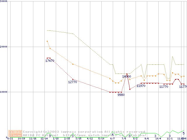 PC2100 DDR SDRAM 512MB(CL2.5) ECCの価格推移