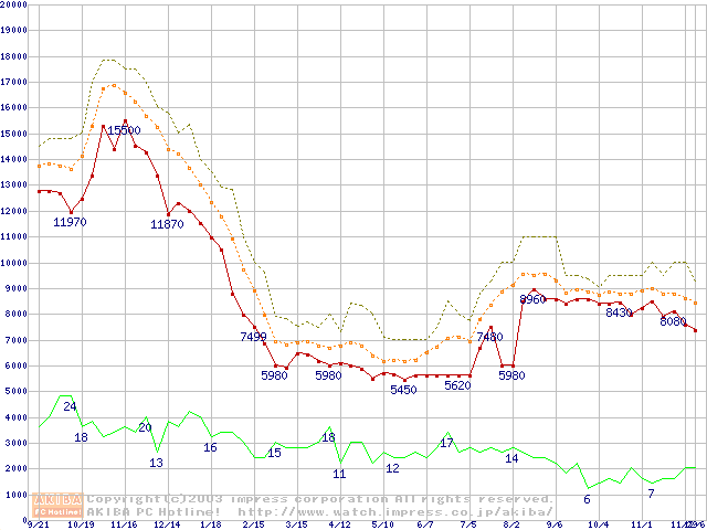 PC2100 DDR SDRAM 512MB(CL2)の価格推移