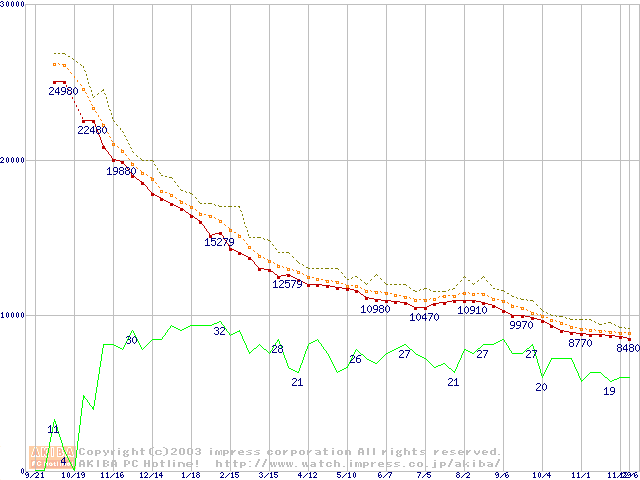 Deskstar 180GXP IC35L120AVV207-0 (120GB)の価格推移