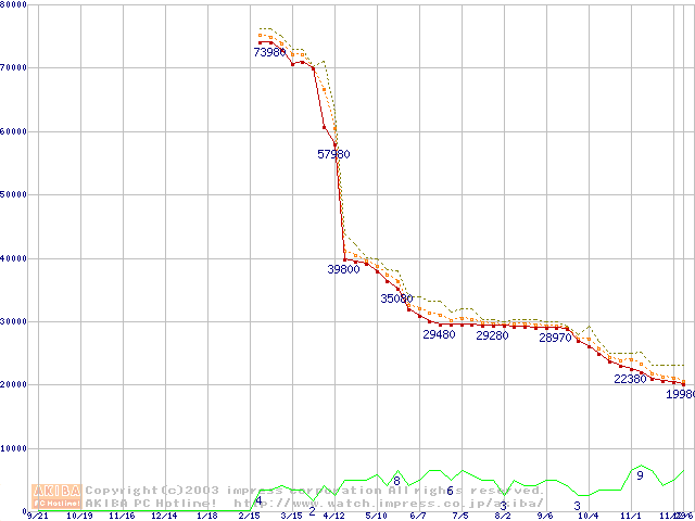 Socket A (OPGA,FSB 333MHz,L2 512KB,Barton)の最安値推移