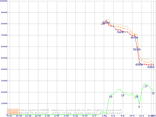 Socket 478 (micro-PGA,FSB 800MHz,L2 512KB,Hyper-Threading,Northwood)の最安値推移