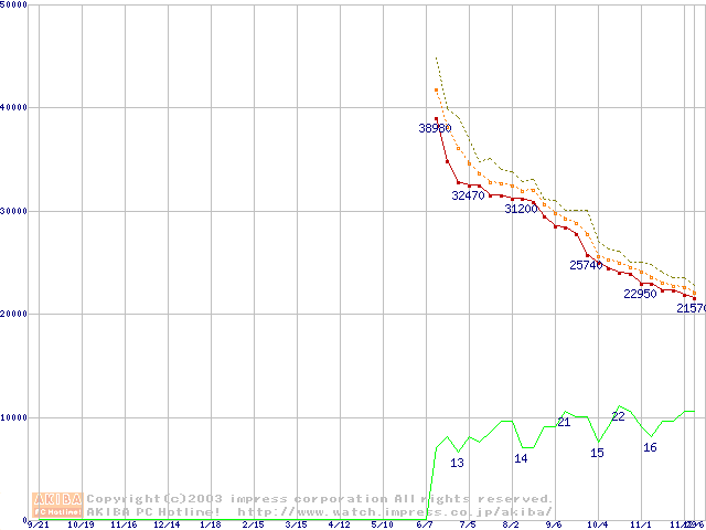 HDD主要製品の最安値推移