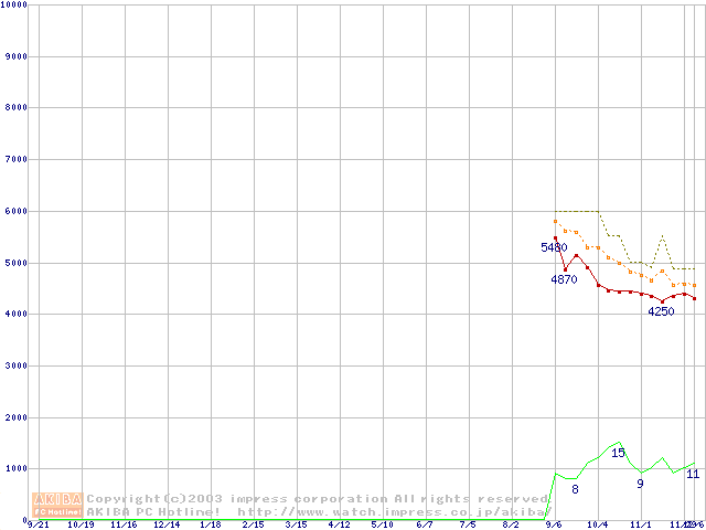 Socket A (OPGA,FSB 266MHz,L2 64KB,Applebred)の最安値推移