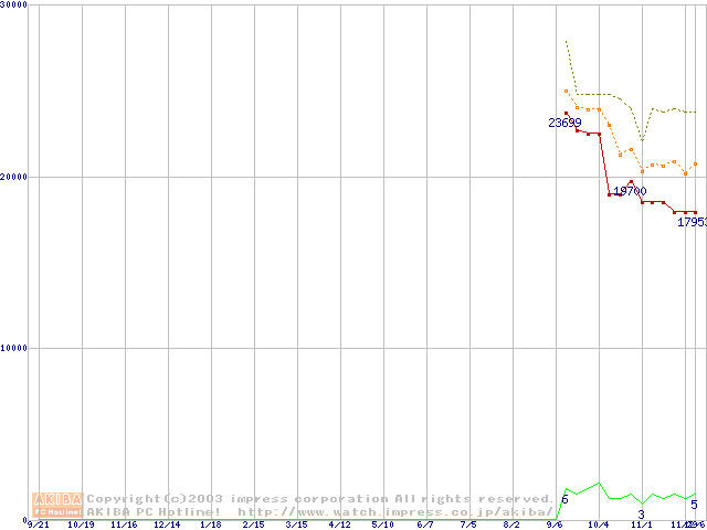 PC4300(DDR533) DDR SDRAM DIMMの最安値推移