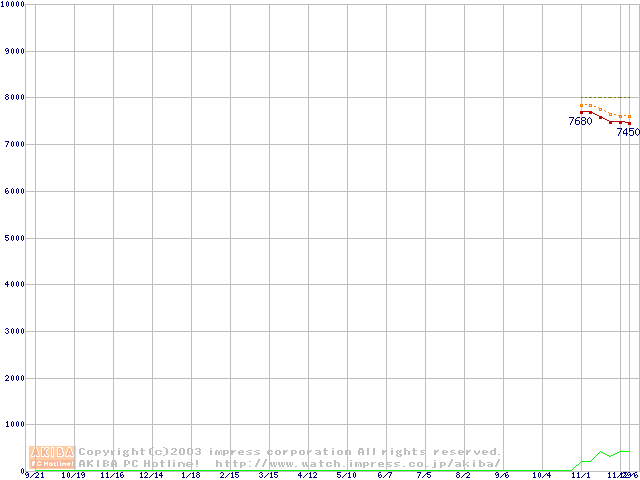 Socket A (OPGA,FSB 266MHz,L2 256KB,Thoroughbred)の最安値推移