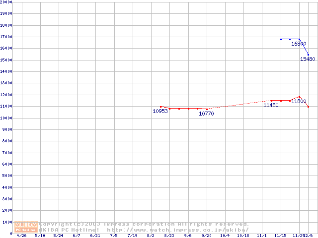 | [↑前グラフ]: | Momentusシリーズ (9.5mm,5400rpm,UltraATA/100,8MB,FDB)の最安値推移 |