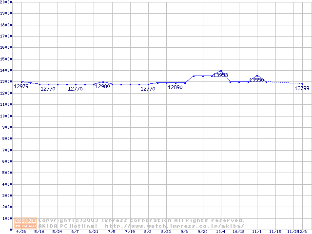 | [↓次グラフ]: | MHT20x0AHシリーズ (9.5mm,5400rpm,UltraATA/100,8MB,FDB,40GB/Platter,FDB)の最安値推移 |