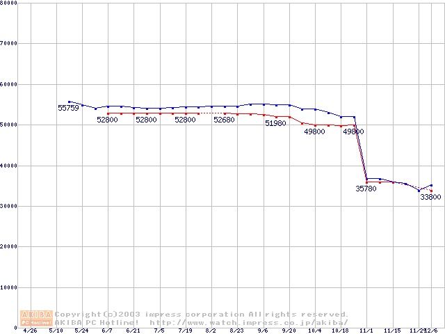| Socket A (OPGA,FSB 400MHz,L2 512KB,Barton)の最安値推移 |