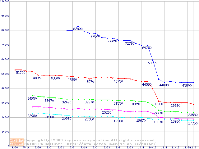 | [↓次グラフ]: | Socket 478 (micro-PGA,FSB 533MHz,L2 512KB,Hyper-Threading,Northwood)の最安値推移 |
