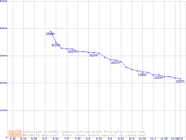 | [↑前グラフ]: | DiamondMax Plus 9 (7200rpm,8MB,SerialATA/150,FDB)の最安値推移 |