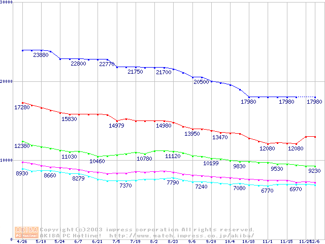 | [↑前グラフ]: | DiamondMax Plus 9 (7200rpm,8MB,UltraATA/133,FDB)の最安値推移 |