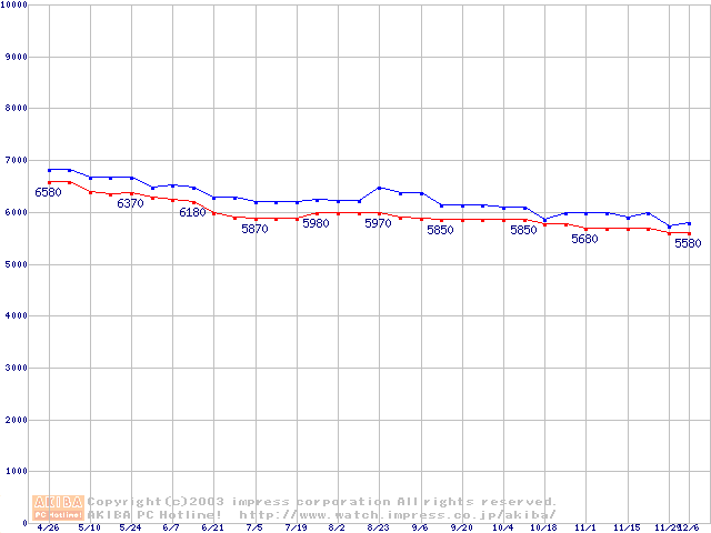 | Fireball 3 (5400rpm,UltraATA/133,2MB,FDB)の最安値推移 |