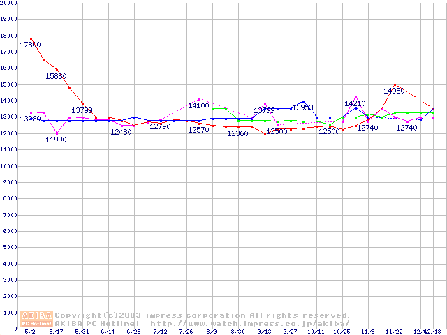 | [↑前グラフ]: | 2.5インチHDD 20GB~40GB未満(9.5mm厚)の最安値推移 |