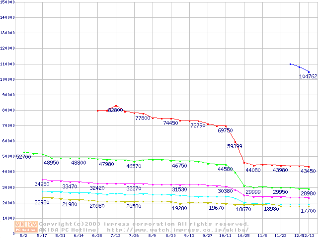 Socket 478・FSB 800MHzの最安値推移
