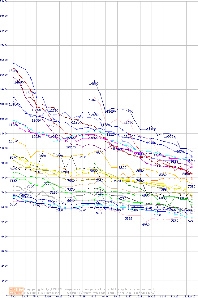 HDD主要製品の最安値推移