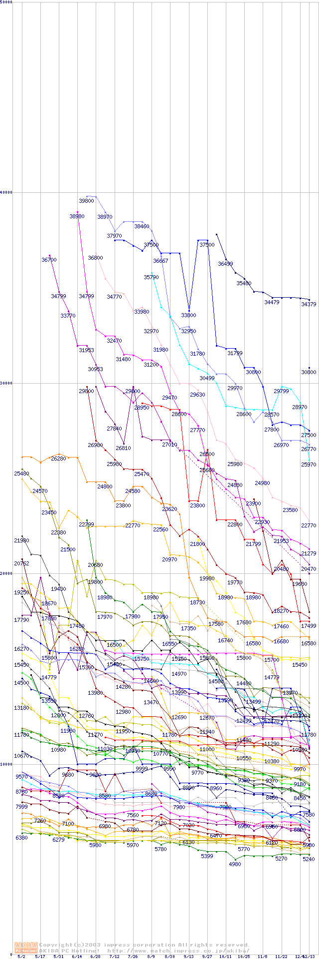 ※製品名をクリックすると個別のグラフを表示します ※点線部は販売店が確認できなかった、または調査データがないことを示します |