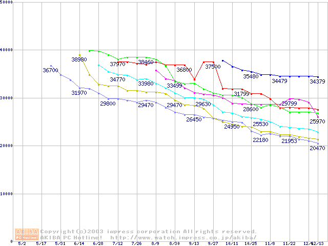 メモリ主要製品の最安値推移