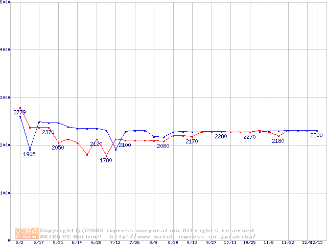 256MBモジュールの最安値推移