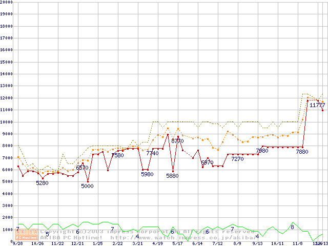 PC100 SDRAM DIMM CasLatency=2の最安値推移