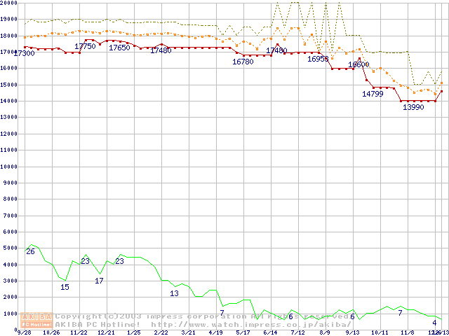 Socket 478 (micro-PGA,FSB 400MHz,L2 512KB,Northwood)の最安値推移